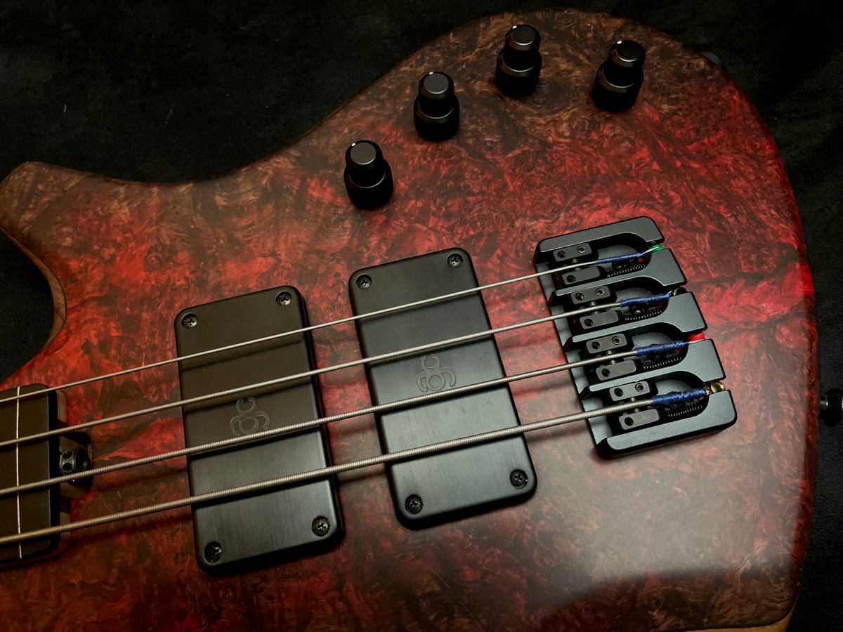 - Hardware: ACG/Hipshot bridge, Gotoh Resolites Dunlop strap locks